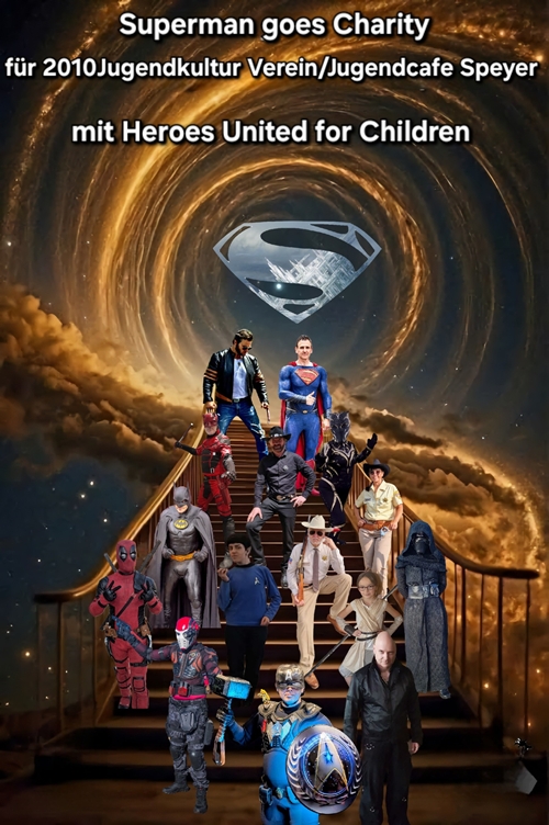 Des weiteren wird mit mir als Superman noch diverse weitere Marvel und DC Superhelden eintreffen für Fotos und Autogramme, sowie Tombola Flohmarkt und der ganze Erlös geht eben an den Verein vor Ort.
